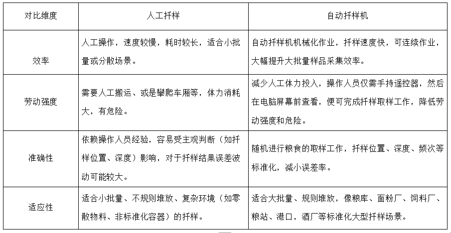 進(jìn)行原糧的扦樣工作,一張圖告訴你人工扦樣和自動(dòng)扦樣機(jī)扦樣有啥區(qū)別?